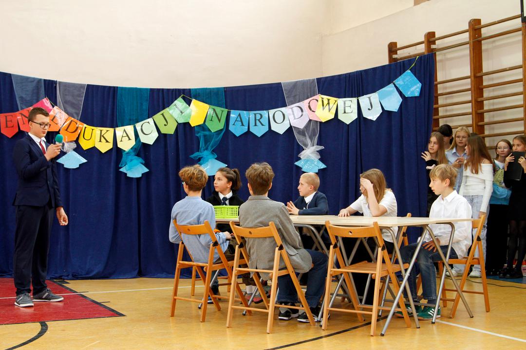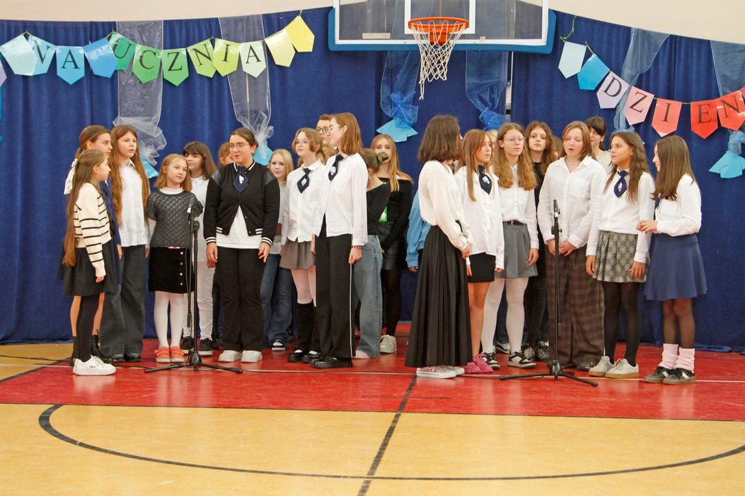 We wtorek 14 października świętowaliśmy w naszej szkole Dzień Edukacji Narodowej 🌹 Był to wyjątkowy dzień pełen życzliwości, wdzięczności i radości 🙂 Uczniowie realizowali projekt pt. „Razem dla wartości”, w ramach którego rozmawiali o szacunku, współpracy i odpowiedzialności ❤ O godz. 11:45 zgromadziliśmy się na apelu, przygotowanym przez uczniów klasy 6b 🎤 Było uroczyście, radośnie i z poczuciem humoru 💐 Tadycyjnie nauczyciele otrzymali swoje nominacje – to moment, na który wszyscy czekają z niecierpliwością każdego roku 😉 🎉 Zapraszamy do obejrzenia galerii zdjęć