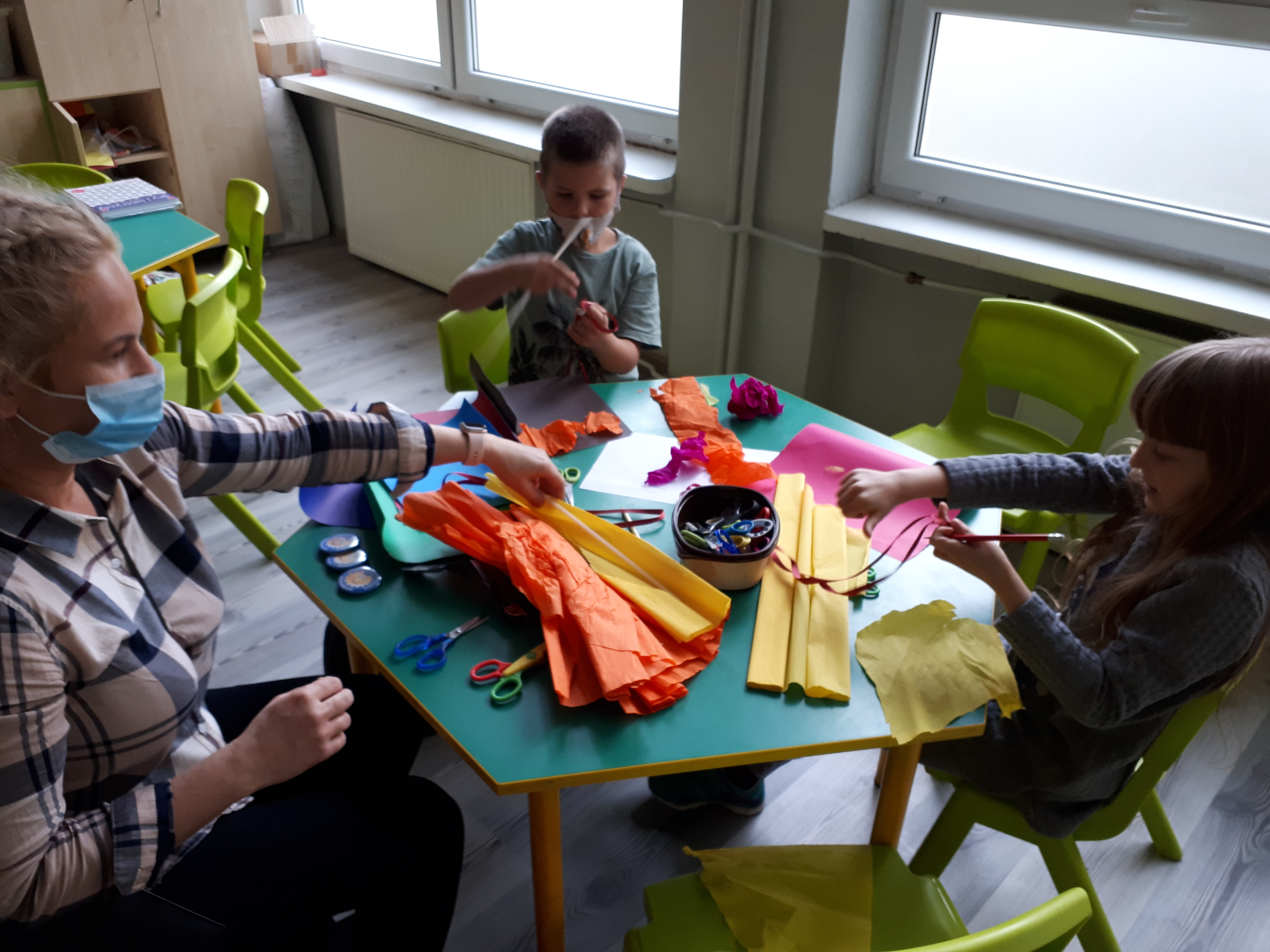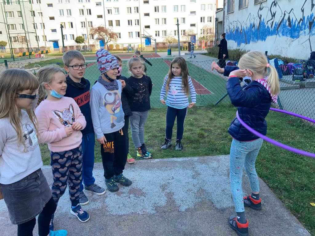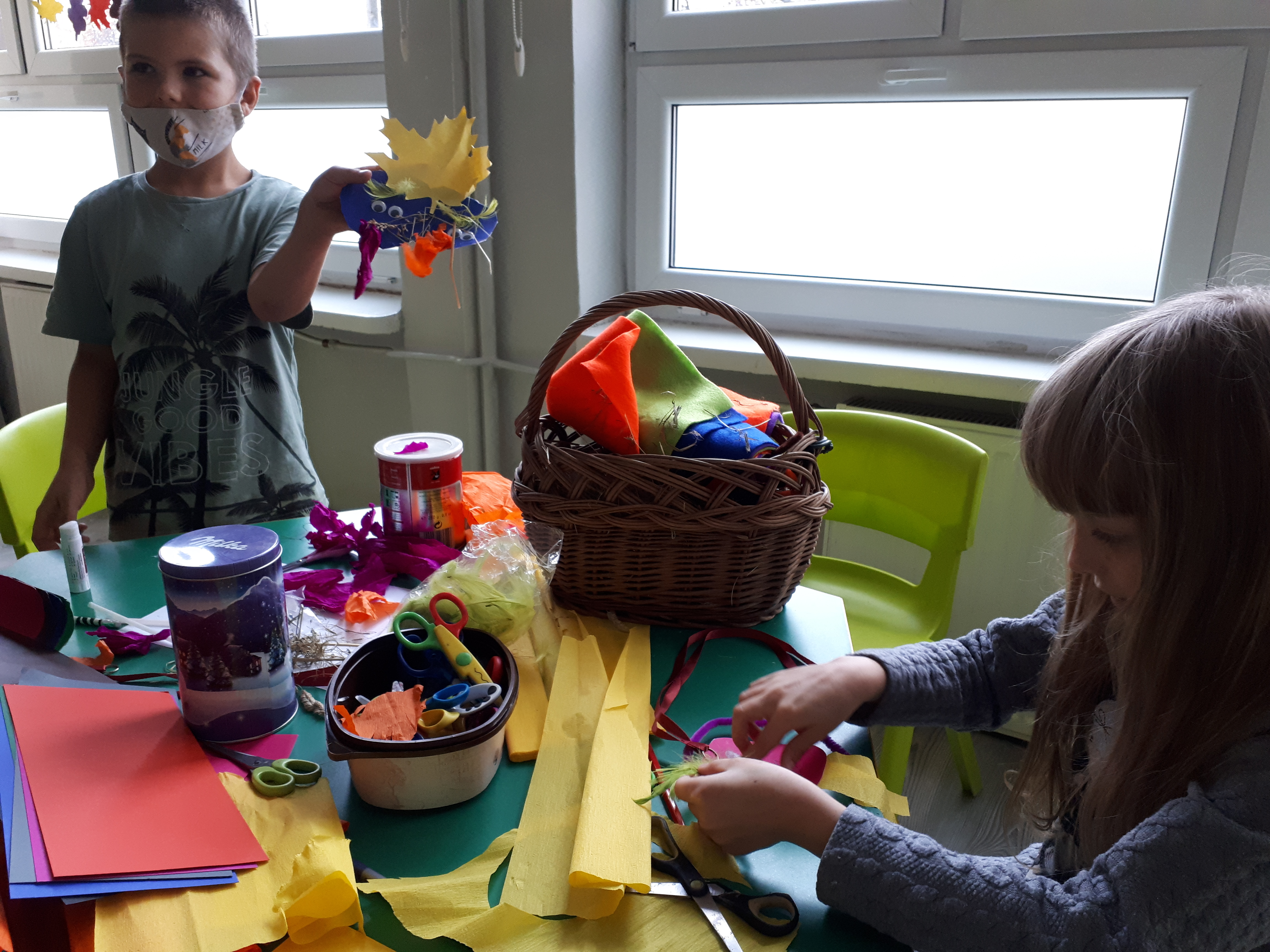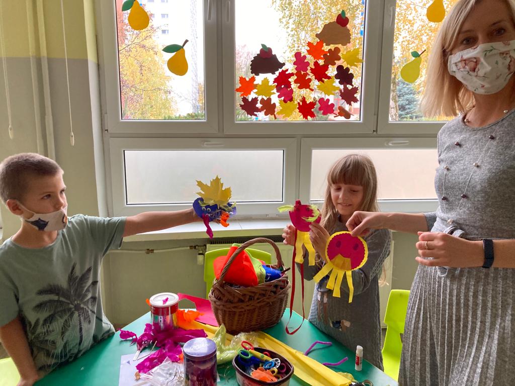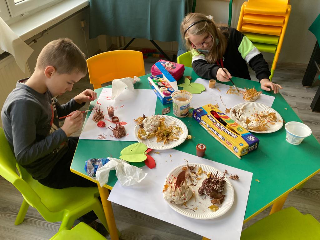 Grudzień w świetlicy był radosny i pełen zabawy, ale też pracowity. Początek miesiąca przywitał nas śniegiem, bawiliśmy się na boisku szkolnym lepiąc bałwana, rzucając kulkami. Poznawaliśmy pracę górnika, obejrzeliśmy prezentację o Barbórce i wykonaliśmy czapki górnicze. Czekając na święta wykonywaliśmy ozdoby świąteczne z patyczków laryngologicznych: renifery, mikołaje, bałwany. Tworzyliśmy kartki świąteczne, samodzielnie redagowaliśmy życzenia, pisaliśmy list do Świętego Mikołaja, malowaliśmy krajobraz zimowy, ozdabialiśmy bombki styropianowe. Wykonywaliśmy choinki z papieru według własnej inwencji. Ozdabialiśmy pomarańcze goździkami, dekorowaliśmy pierniki kolorowym lukrem i czekoladą. Ćwiczyliśmy głowy rozwiązując rebusy, krzyżówki bożonarodzeniowe, wykreślanki. Uczyliśmy się na pamięć wyliczanek z książeczki „Ene due rabe”. Zaangażowaliśmy się w przygotowanie „Jasełek” dla całej szkoły. Ćwiczyliśmy sumiennie tekst przedstawienia, uczyliśmy się kolęd: „Dzisiaj w Betlejem”, „Gdy się Chrystus rodzi”, „Wśród nocnej ciszy”, „Pójdźmy wszyscy do stajenki”, „Przybieżeli do Betlejem”. Przygotowaliśmy dekorację i stroje do Jasełek. Nagrywaliśmy kolędy na konkurs kolęd, którego rozstrzygnięcie odbędzie się w styczniu 2021 roku. Uczestniczyliśmy w zabawach na sali gimnastycznej, graliśmy w „Hokeja”, pokonywaliśmy tor przeszkód. Bawiliśmy się w zabawy: „Raz dwa trzy – Baba Jaga patrzy”, „Renifery”, „Bałwanki”, „Berek zamrażany”, „Posągi lodowe”. Braliśmy udział w zabawie „Mindfulness” ćwicząc koncentrację uwagi. Wychowawcy świetlicy zorganizowali i rozwiązali dwa konkursy: „Zaprojektuj order życzliwości” oraz „Stroik bożonarodzeniowy”, a dzieci w świetlicy przygotowały przepiękne prace.