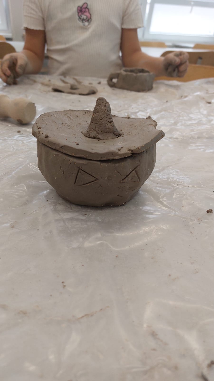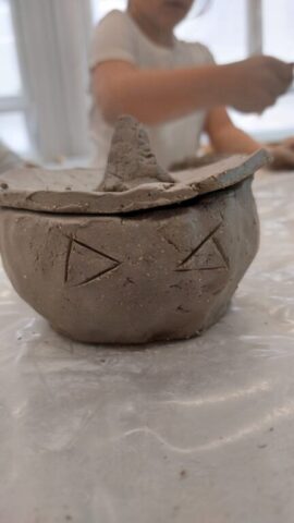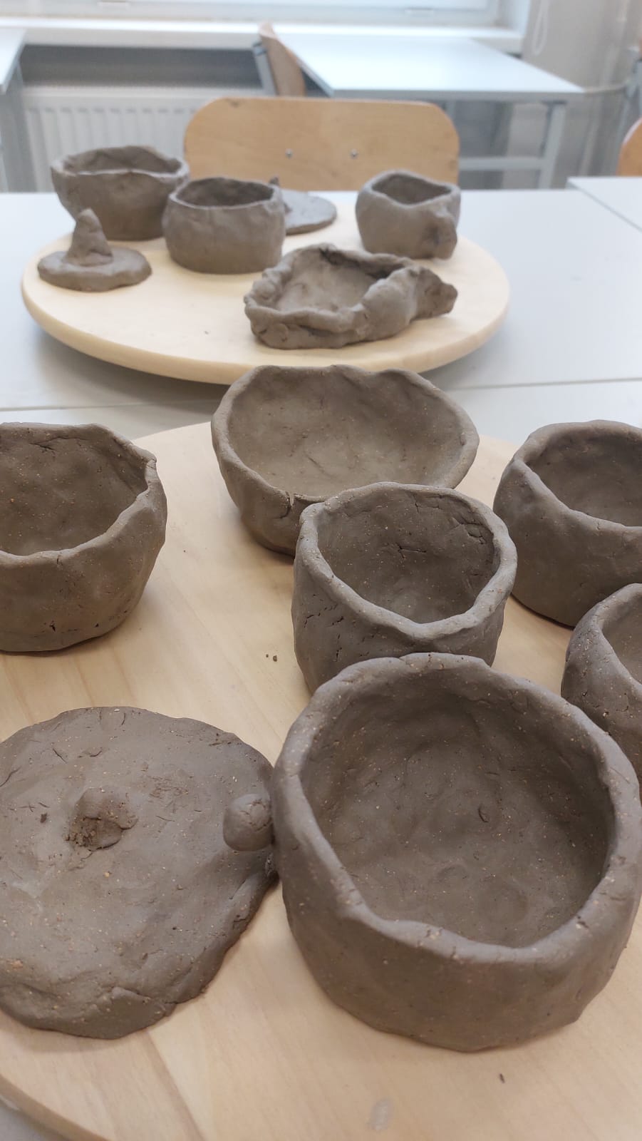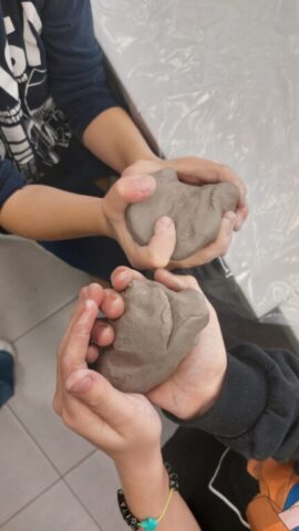 Na pierwszych zajęciach ceramicznych poznawaliśmy technologie powstawania ceramiki. Próbowaliśmy swoich sił w prostym sposobie wylepiania naczyń. Dowiedzieliśmy się, w jak dużych temperaturach wypalana jest glina i jakie zasady panują w pracowni ceramicznej.