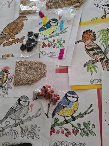 Na początku miesiąca rozmawialiśmy o ptakach – naszych małych przyjaciołach. Dzieci poznały różne gatunki ptaków, ich zwyczaje i sposoby przygotowań do zimy. Powstały też piękne tematyczne prace plastyczne.