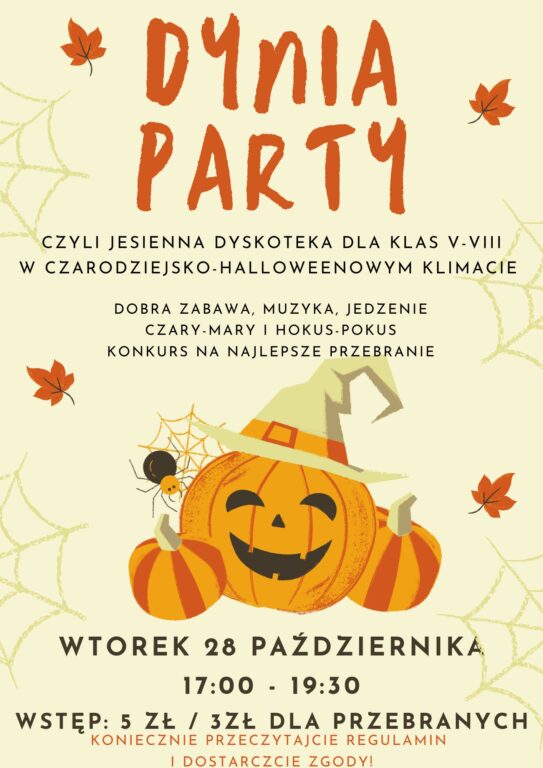 Jesienna dyskoteka – zaprasza SU i Wolontariat Kapibara Wysłany 20.10.2025 przez Zofia Feliniak Regulamin dostępny w ogłoszeniach na Librusie! Zapraszamy! SU & Kapibara