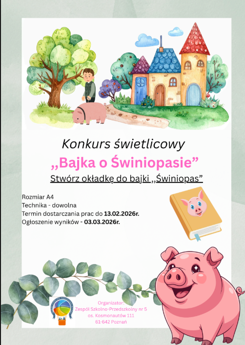 Nasze Drzwi Otwarte Szkoły już niedługo, dlatego wybiegamy odrobinę w przyszłość i z tej okazji serdecznie zapraszamy uczniów klas 1-3 uczęszczających do świetlicy szkolnej do udziału w konkursie ,,Bajka o Świniopasie – okładka książki”, którego zadaniem jest zrobienie tematycznej okładki książki. Liczymy na Wasze wspaniałe pomysły, najbardziej kreatywne prace zostaną nagrodzone.