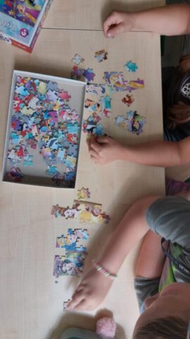 W czerwcu odbyły się także dwa wyjątkowe konkursy: „Słodki deserek”, w którym dzieci mogły wykazać się kulinarną fantazją i stworzyć własne, apetyczne kompozycje oraz „Świetlicowe Mistrzostwa Układania” – spontaniczny konkurs układania puzzli w grupach, który pokazał, jak świetnie dzieci radzą sobie z współpracą i logicznym myśleniem.