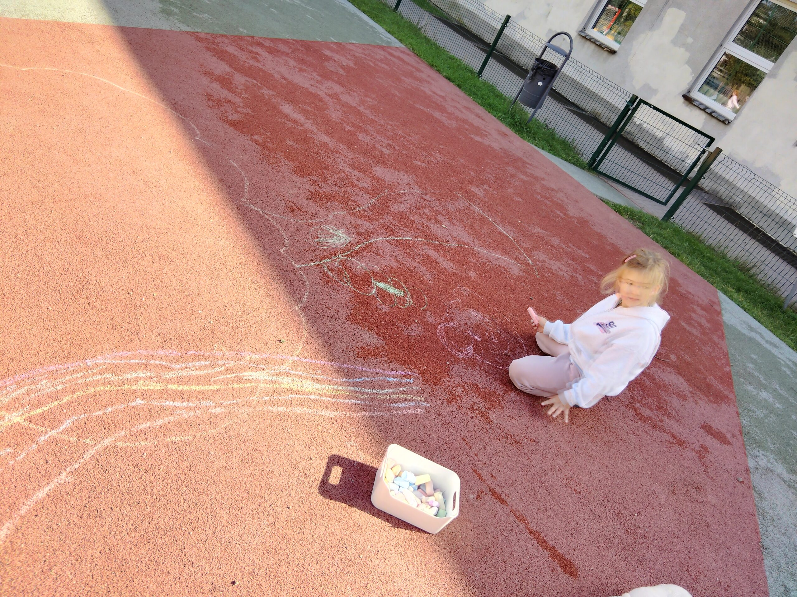We wrześniu pogoda nam dopisywała, dlatego spędzaliśmy czas na świeżym powietrzu. Bawiliśmy się piłkami, skakankami i rysowaliśmy kredą. Wierzymy, że to będzie wspaniały rok!