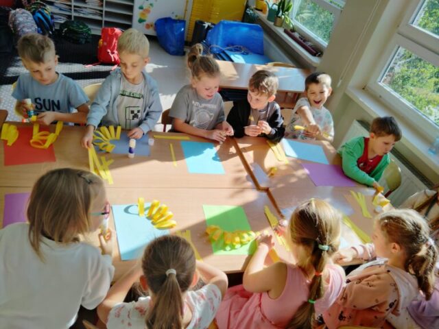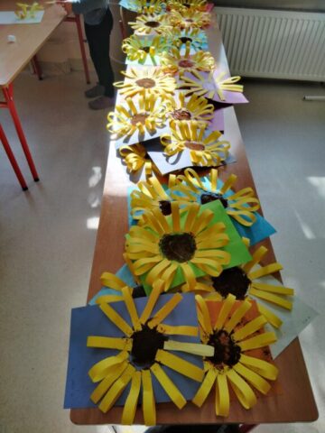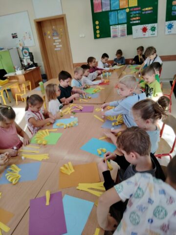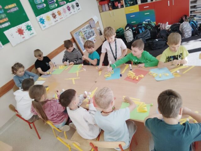 Pod koniec miesiąca zaczęliśmy tworzyć również nowe dekoracje świetlicowe, które wręcz zapraszają wiosnę w nasze progi.
