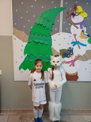 Po przerwie świątecznej wróciliśmy do świetlicy szkolnej z pełną radością i energią. Rozmawialiśmy o tym, jak spędziliśmy święta, i rozpoczęliśmy zabawę. Tworzyliśmy prace plastyczne o różnym charakterze: fajerwerki z okazji powitania nowego roku, pejzaże zimowe, maski karnawałowe, laurki z okazji Dnia Babci i Dziadka. Na zajęciach kulinarnych też się nie nudziliśmy – przygotowaliśmy pianki z galaretki oraz pączki. Nie mogliśmy doczekać się Tłustego Czwartku. Pod koniec stycznia cieszyliśmy się balem karnawałowym od samego rana na świetlicy. Spędziliśmy czas na zabawie ze śniegiem, ciesząc się z tej upragnionej zimowej aury. Był to naprawdę radosny miesiąc.