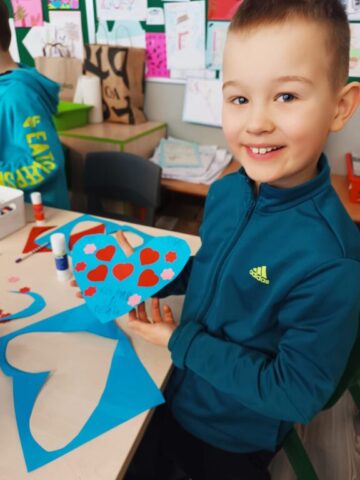 W lutym nie zabrakło również prac plastycznych. Powstały kolorowe kartki oraz ozdoby walentynkowe, a także papierowe kwiaty z bibuły, które wprowadziły do świetlicy miłą atmosferę.