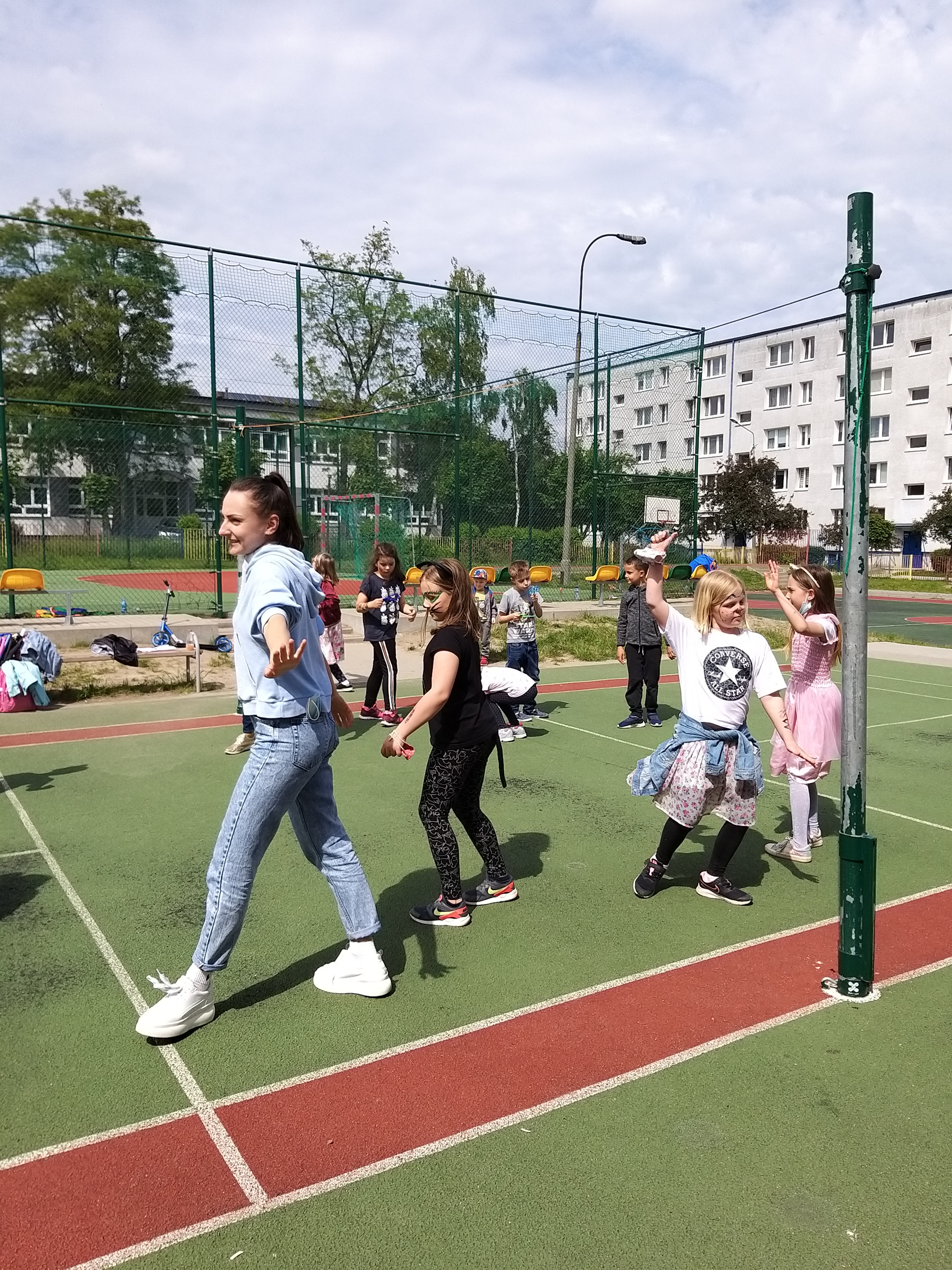 spędzały na boisku szkolnym, placu zabaw, grając w piłkę, biegając, skacząc na skakance lub po prostu