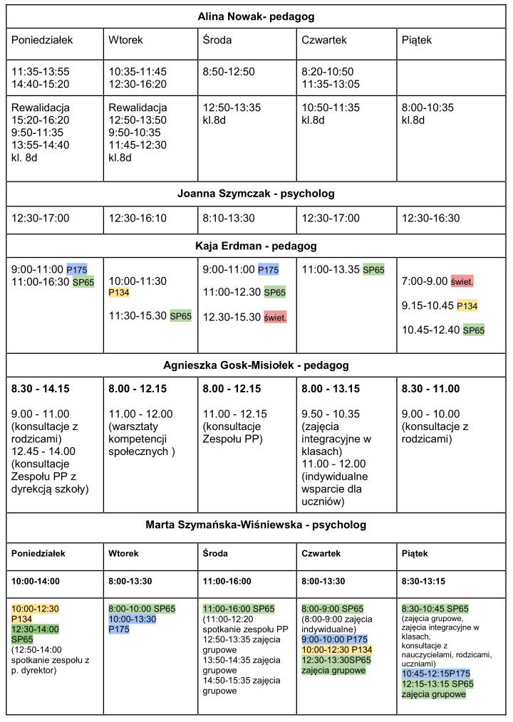 Wsparcia szkole udziela Poradnia Psychologiczno-Pedagogiczna nr 4,